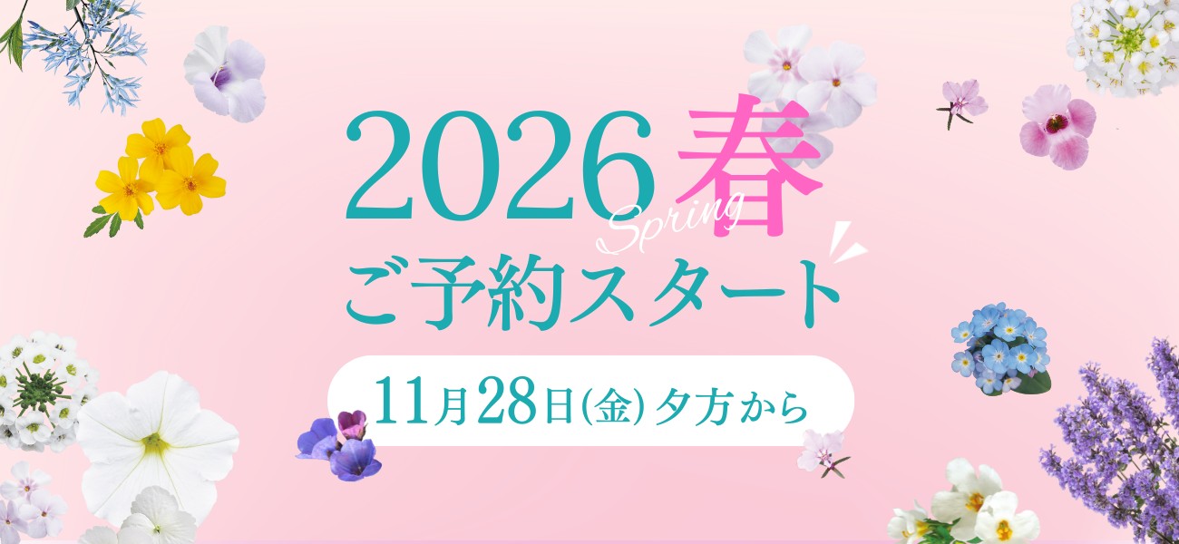 2026年 新品種 2026年春夏も新品種が登場します。 【2026NEW】フクシア フェアリーダンス 下向きに揺れる可憐な花姿は“貴婦人のイヤリング”のよう! ¥550税込 【2026NEW】タイム セントグレード 夏も花房が途切れにくい画期的なクリーピングタイム! ¥550税込 【2026NEW】イポメア モリーナ ライムハート ハート形の葉と鮮やかなライムカラーが特徴! ¥770税込 【2026NEW】イポメア スパイラル ブラウニー 大人のガーデンに映える、スタイリッシュリーフ! ¥550税込 秋おすすめの花苗!シクラメン 秋から春まで長く、華やかに彩る!人気のミニシクラメン!寄せ植えにもおすすめ!