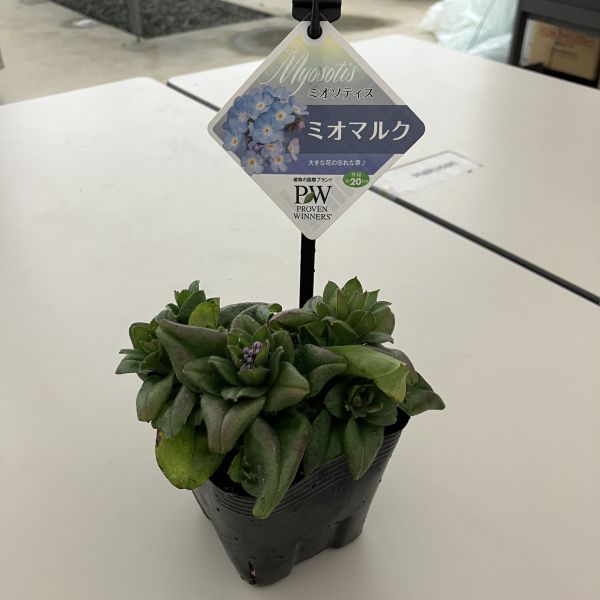 ミオソティス ミオマルクは、ワスレナグサ(ミオソティス)の交雑種です。忘れな草の花色は、淡い水色で何ともいえないかわいらしさがありますが、ミオソティスミオマルクは花が1〜1.5cmと大きく、そのかわいらしさが一層引き立ちます。コンパクトな草姿で、春先には株一面に花を咲かせ春の訪れを感じさせてくれます。