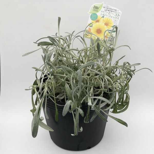 ガザニア ビースト シルバーフォックスは、すっきりした花色と爽やかなシルバーリーフが特徴のガザニアです。マットな質感のシルバーリーフが爽やかで、夕方や曇りの日など花が閉じている間もリーフカラーをお楽しみいただけます。