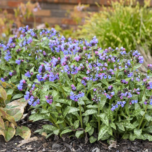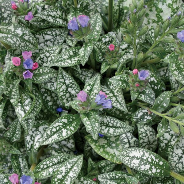 プルモナリア ピンクアブルーは、春の終わりにピンク色の花が咲き、すこしずつ青に変化していきます。その花姿はまるで春の魔法のよう。さらに、深緑の葉にはきらめく銀の斑点が散りばめられ、花が終わってからもその美しさは色あせることはありません。花も葉も、見るたびに心ときめく。プルモナリア ピンクアブルーがあれば、春の庭がもっと特別になります。