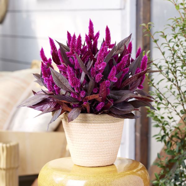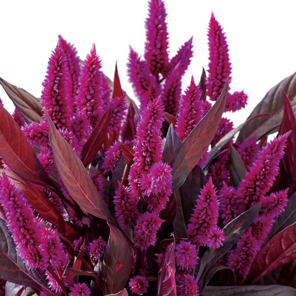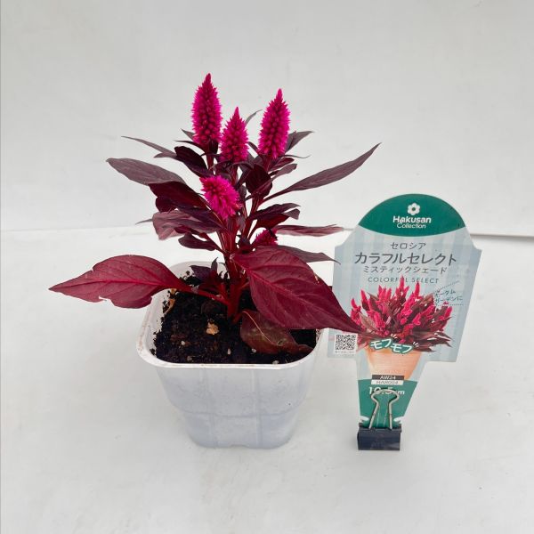 セロシア カラフルセレクト ミスティックシェードは、深紫色のリーフの中に咲く紫色の花穂がとても美しいセロシアです。風にそよぐ様子は、とても神秘的。艶のあるパープルリーフとマットな花穂の異なる素材のテイストが組み合わさることで、唯一無二のセロシアの魅力が際立ちます。