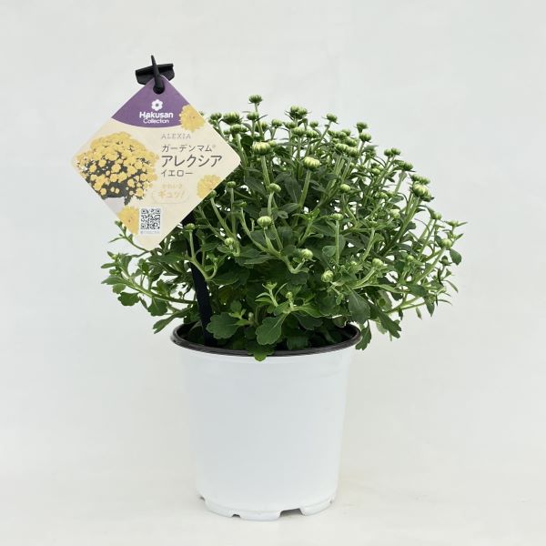 ガーデンマム アレクシア イエローは、にごりのないキレイなイエローカラーのガーデンマムです。秋らしい温かみのある黄色で、秋のお庭を少し明るくしたい時に、大活躍!元気なイエローがポップに弾けます。