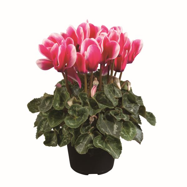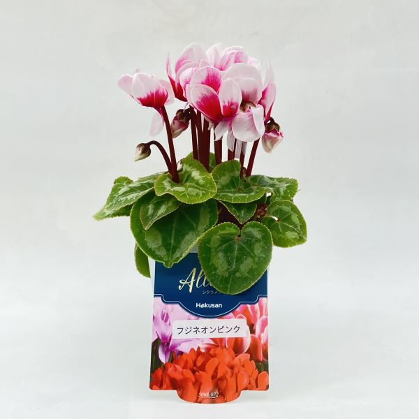 シクラメン アルーレ フジネオンピンクは、ホワイトのレースのような縁取りが可愛らしいシクラメンです。ミディアムサイズの存在感のある花を咲かせ、寄せ植えに使っても豊かな表情を魅せてくれます。