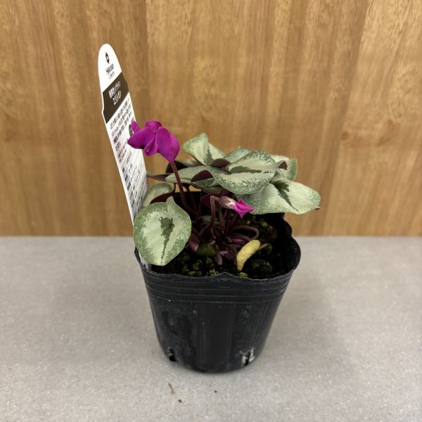 一般的な園芸品種のシクラメンに比べると小ぶりで可愛らしい印象で、株によって花と葉の色・形・模様が大きく異なり、一株ごとに個性があります。
