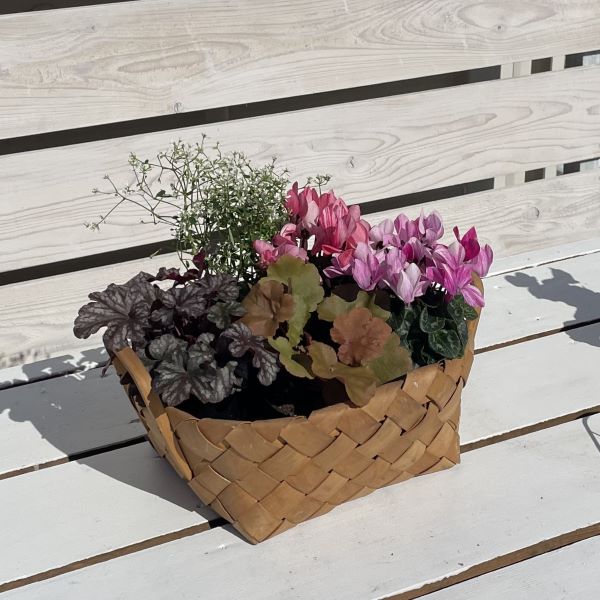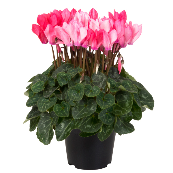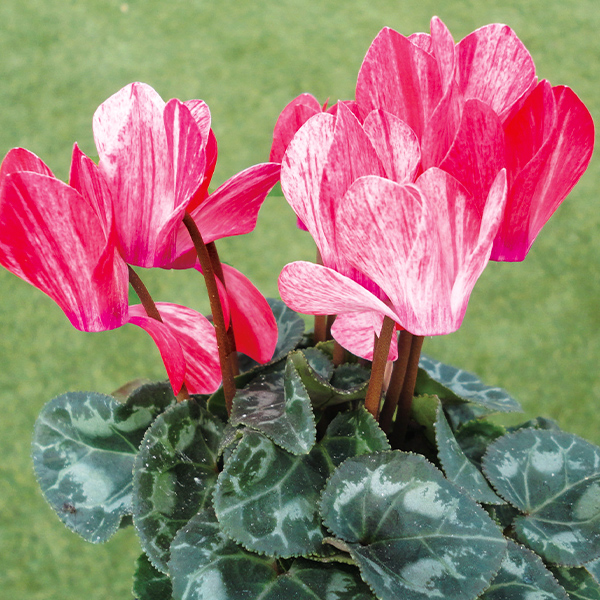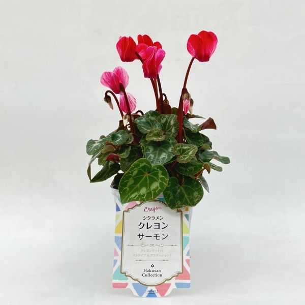 シクラメン クレヨン サーモンは、淡いピンクにオレンジ味がかった濃いピンクのクレヨン模様で、温かみがあるお庭を彩ります。