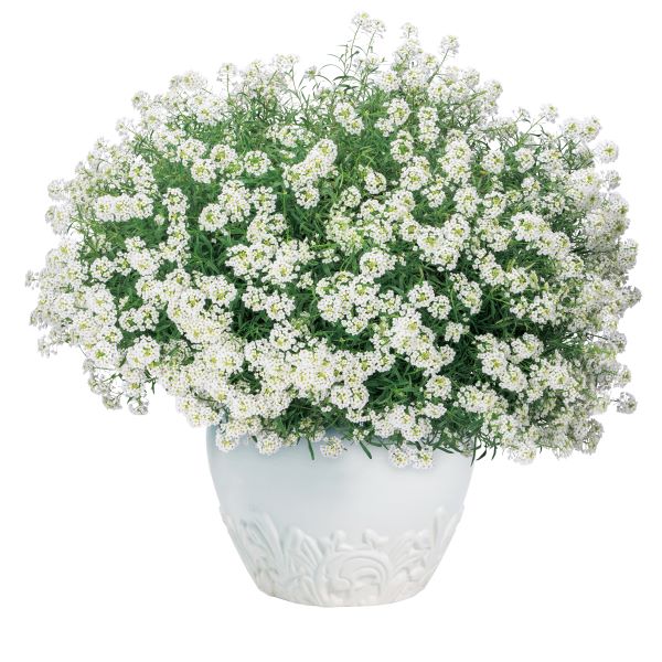スーパーアリッサム は、スイートアリッサムにとって難しい厳しい暑さの時期でも開花するように改良された開花期間が長い画期的なスイートアリッサムです。真夏や真冬は花が少なくなることがありますが、ほぼ一年中小さな手まりのような花を株いっぱいに咲かせ、一年中花が途切れない花壇を作ることができるようになりました。