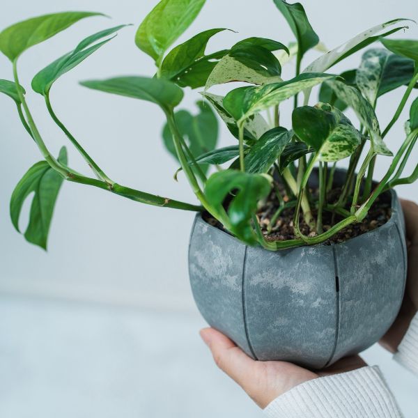 吊り下げ使用ができる優美なフォルムと、植物を健やかに育てるスリット構造を備えた機能的なポットです。倒れにくい安定設計で、室内・屋外どちらでも快適に使えます。