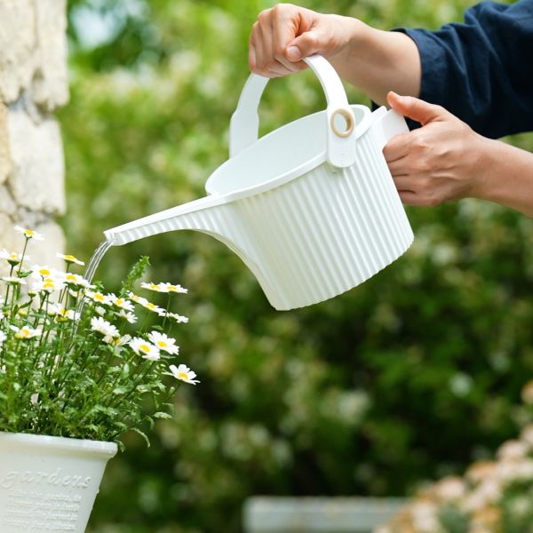 独自開発の注ぎ口が、噴水ショーのようにやさしく広がる散水と、素早く注げる直注ぎの 2WAY散水(特許・意匠出願済)を実現。毎日の水やりがドラマティックに変わります。