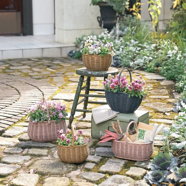 籠あみ風デザインが魅力の、バスケット型植木鉢。