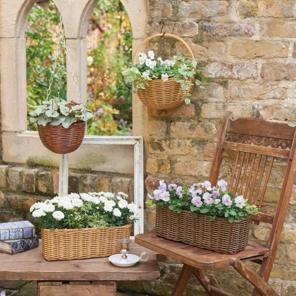 籠あみ風デザインが魅力の、バスケット型植木鉢。