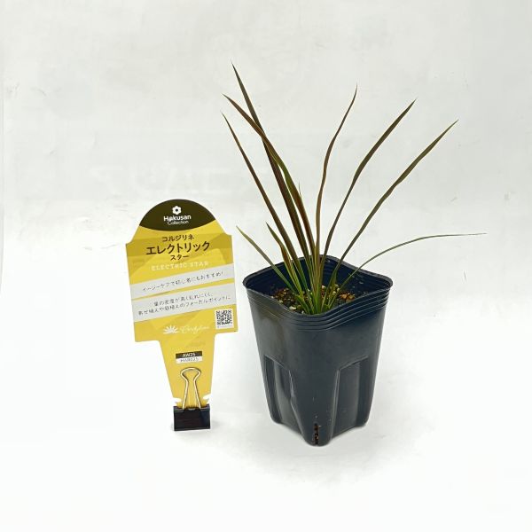 コルジリネ エレクトリック スターは、ライトグリーンとバーガンディブラウンの明るいストライプ模様のコルジリネです。自然に馴染みやすく、ナチュラルガーデンに欠かせない品種です。