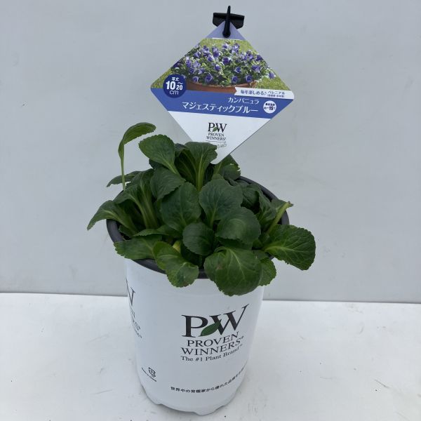 カンパニュラ マジェスティックブルー は暑さに強く、生育旺盛なハイブリッドホタルブクロです。ベル形のホタルブクロには珍しい濃い青色の花が印象的です。一般的なホタルブクロが苦手な日なたでも育ちます。草丈がコンパクトで地下茎で横に這いながら年々株が広がっていきます。