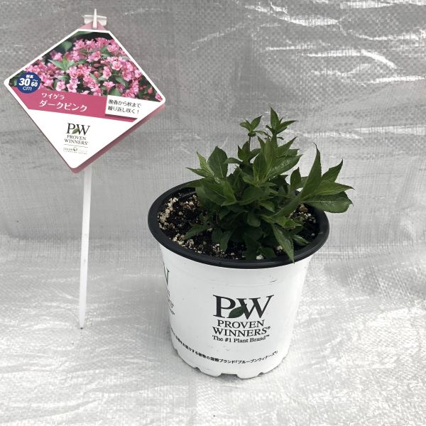 鮮明なピンク色の花をたくさん咲かせるのは、ワイゲラ ダークピンクです。チェコ共和国生まれのこの品種は、日本でも優れた花付きを見せてくれます。毎年春になると、アップルグリーンの葉が見えないほどの花数で株を覆います。根付けば、植えっぱなしでも育つ丈夫な植物で、ガーデニング初心者の方にもおすすめです。