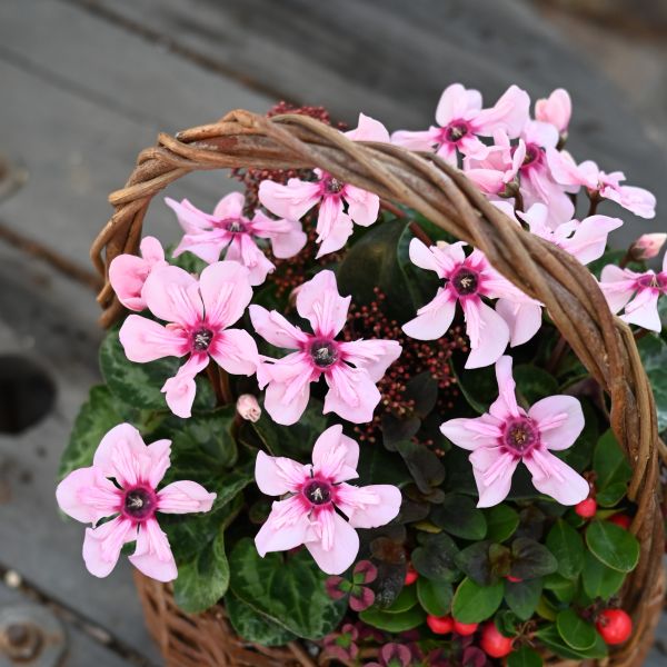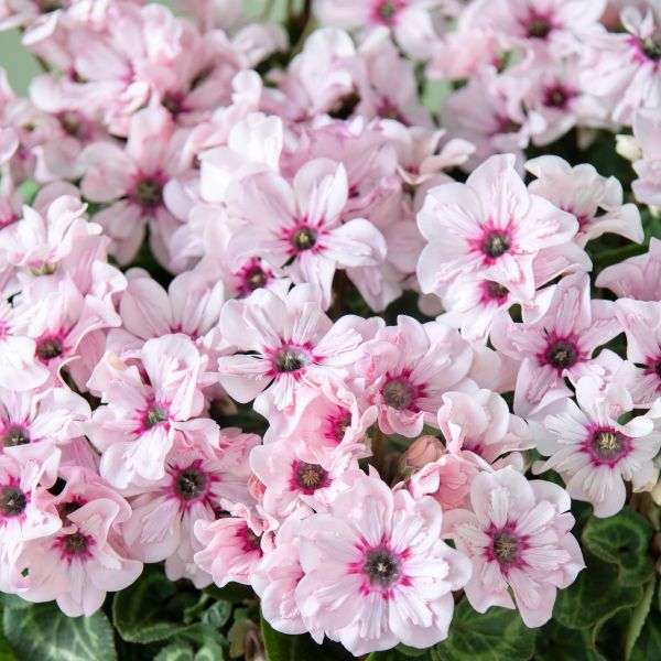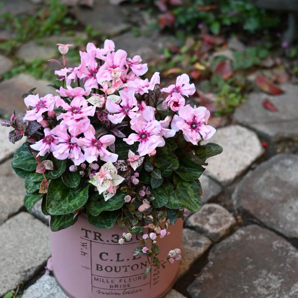 イリュージアは次々と上向きに花が咲き、株を覆いつくすほど豪華に花が咲き誇る幻想的なシクラメンです。