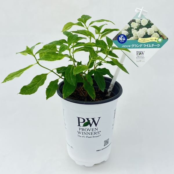 ノリウツギ グランデ ライムチークは、淡いライムグリーンの花房が優雅なノリウツギ ライムライトのコンパクト品種です。花の色味はライムライトと同じですが、樹高はたった約3分の1というサイズになります。夏に咲く花はどんな植物にもよく合う優しいライムグリーン。秋になるとピンクを帯びたアンティークカラーへと変わり、長く庭を彩ってくれます。