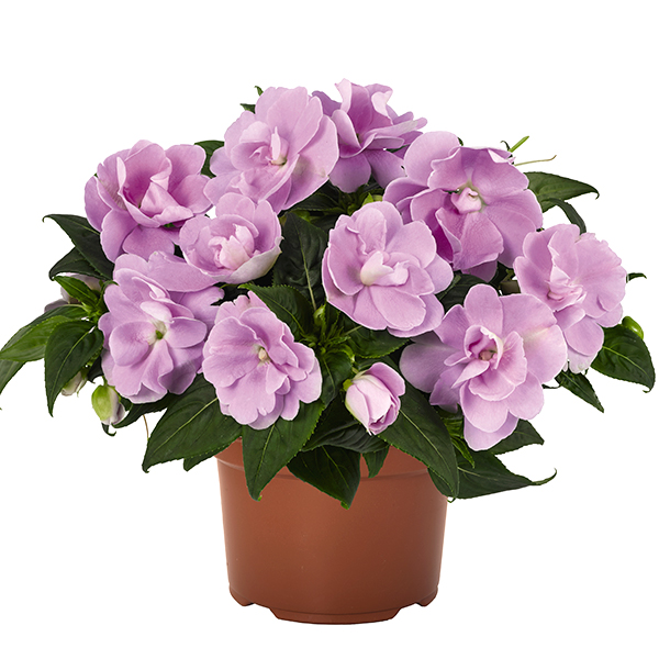 ニューギニアインパチェンス ワイルドロマンスは、折り重なる表情豊かな八重咲きのニューギニアインパチェンスです。分枝性がよくボリュームある株に生育します。