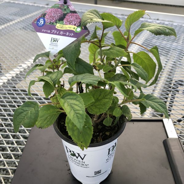 アナベル プティ ガーネットは、濃いピンク色のアナベルです。コンパクトなサイズでありながら、丈夫な茎を持ちます。他のアナベルシリーズよりもやや開花は遅いのですが、初夏から咲き始め切り戻すと秋まで繰り返し咲き、長く開花を楽しめます。花色はピンクからグリーンへと変化していきます。