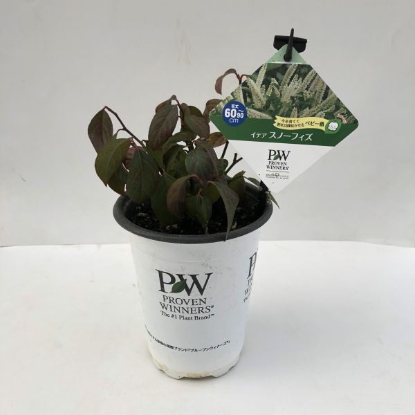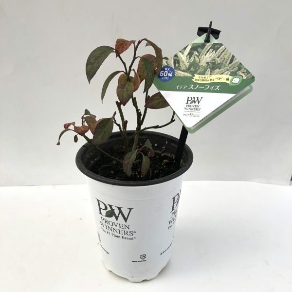 イテアは花穂の重みで枝垂れ咲くのが一般的ですが、イテア スノーフィズは花茎が丈夫で、天に向かって花穂を伸ばします。濃い緑色の葉も厚みがあり丈夫で、病害虫の心配もほとんどありません。