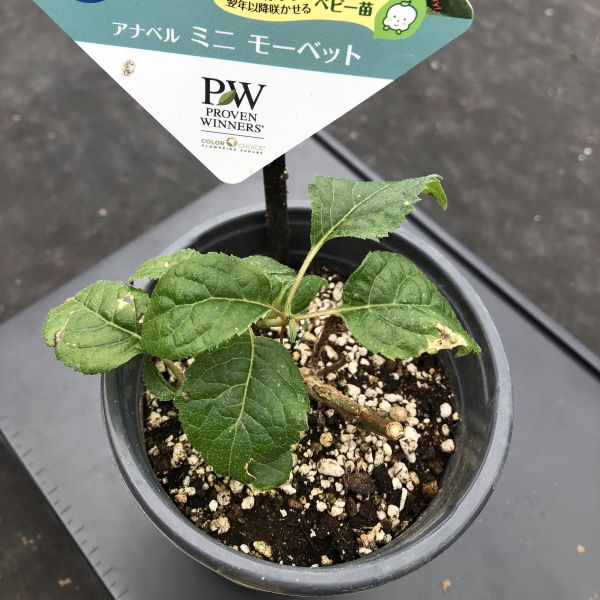 アナベル ミニモーベットは、濃いモーヴピンク色(モーベット色)の花を咲かせるアナベルです。丈夫で太い茎に支えられており、初夏から咲き始め霜が降りるまで繰り返し咲きます。花色はシックなグリーンへと変化します。