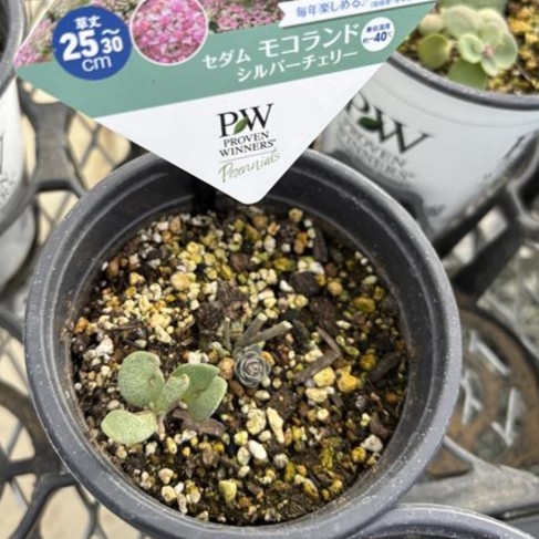 セダム モコランド シルバーチェリーは、他の2品種よりもふんわりと咲くナチュラルな草姿で、鮮やかなチェリーカラーが目を引きます。スタイリッシュなシルバーリーフも見応え十分で、春の萌芽から長く四季の移ろいを楽しむことができます。