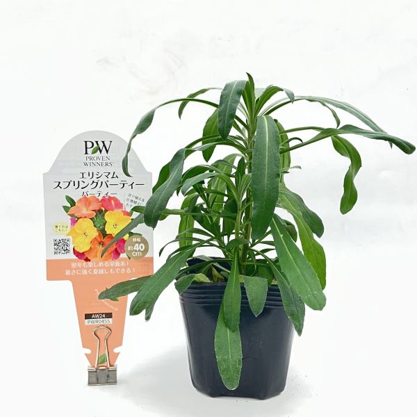 エリシマム スプリングパーティーは、光の強さで花色が変化する華やかなエリシマムです。一般的なエリシマムに比べてひと回り花が大きく、イエローとアプリコットとピンクの花色グラデーションを楽しめます。アンティークカラーの中に明るいイエローがひと際目を引き、春の花壇を華やかに彩ってくれます。