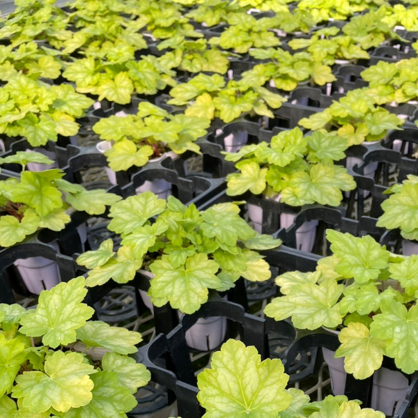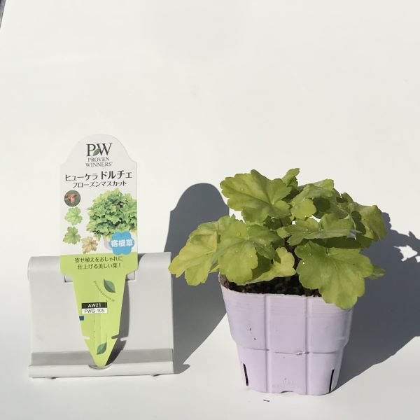 ヒューケラ ドルチェは、一年を通して葉色の変化を楽しめるローメンテナンスのカラーリーフです。一般的なヒューケラは日陰や寒い環境を好みますが、直射日光や暑い環境でも育つ強い品種を厳しく選抜したのがヒューケラ ドルチェです。