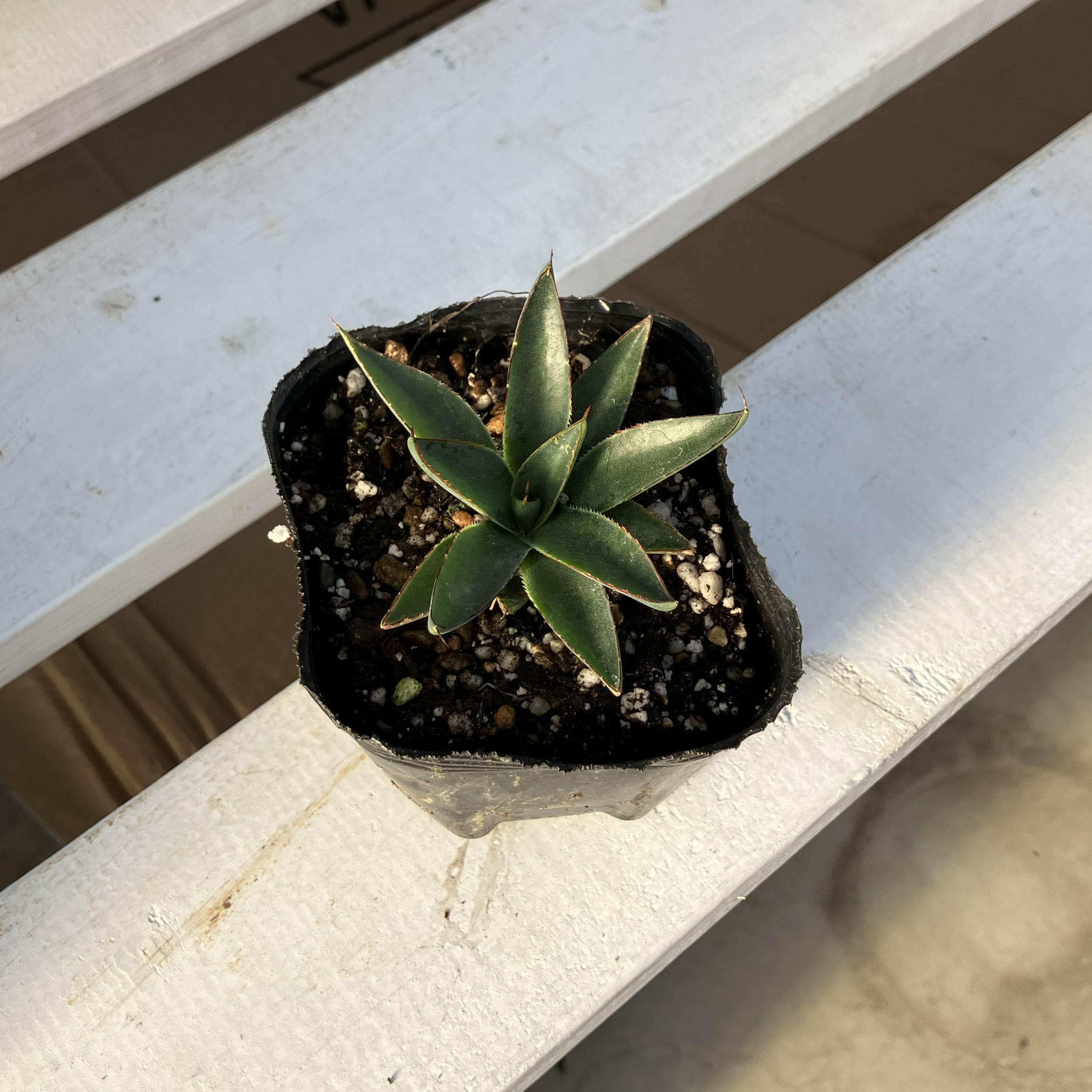 マンガベは、マンフレダとアガベの交雑によって誕生した新ジャンルのハイブリッド多肉植物です。生育旺盛ですが、育てる鉢により小さいままで育てることもできます。特徴的な模様で、日照や温度によって色の変化が楽しめます。また、雨に強く花苗感覚で初心者の方にもカンタンに育てやすいです。