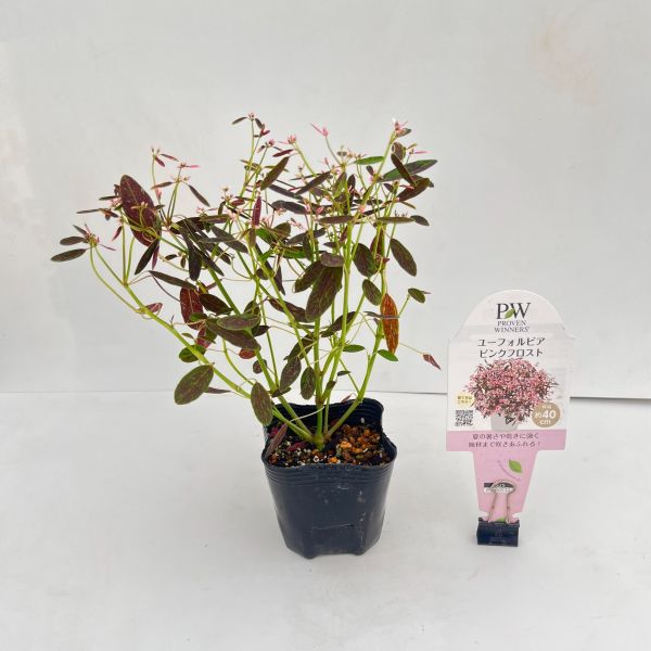 桜色のピンクの小花がふわふわと舞うユーフォルビア ピンクフロスト。ブロンズリーフにフォギーピンクの苞が、お庭に新しいリズムを奏でます。